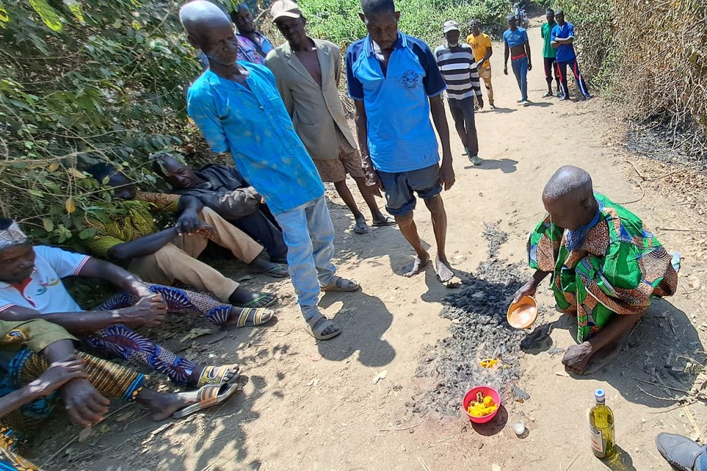 Elles ont consisté en une série de prière, d’invocation des mannes des ancêtres et de consultation des oracles sur toute la population de la commune Est-Mono 1 en générale et en particulier la population qui se trouve derrière le fleuve Ogou à savoir les villages d’Awayo, de Tchamié, de Portapo, de Lakihékou qui sont les premiers bénéficiaires de la construction du pont sur le fleuve Ogou du coté d’ Awayo.