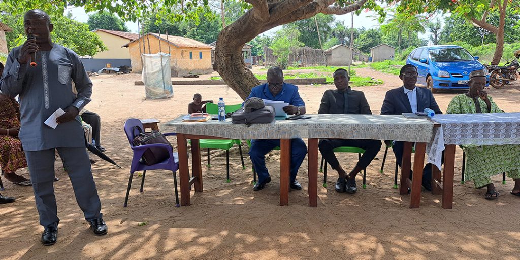 Le Maire de la commune Est-Mono 1, M. TCHAKPI Assima-Esim, dans son allocution a dit que c’est avec un immense plaisir et une grande fierté qu’il adresse ses remerciements aux participants pour leur mobilisation. L’un des objectifs que le conseil municipal s’est assigné est de donner les mêmes chances, droits et considérations aux populations des deux cantons. Pour lui, le choix de Gbadjahè, est une manière de s’approcher davantage des concitoyens, d’amener les acteurs de développement et les leaders d’opinion des deux cantons à s’impliquer dans la gestion des affaires de la commune. Il a invité la population de Gbadjahè à prendre part au plénière de la deuxième session ordinaire de la commune Est-Mono 1 qui se déroulera du 7 au 13 avril 2026 à Gbadjahè. Il a rappelé et a invité la population à prendre part aux activités qui se déroulent conjointement à Elavagnon et à Gbadjahè chaque premier samedi du mois pour la journée Togo-propre et chaque dernier samedi du mois consacré à la journée nationale du sport.